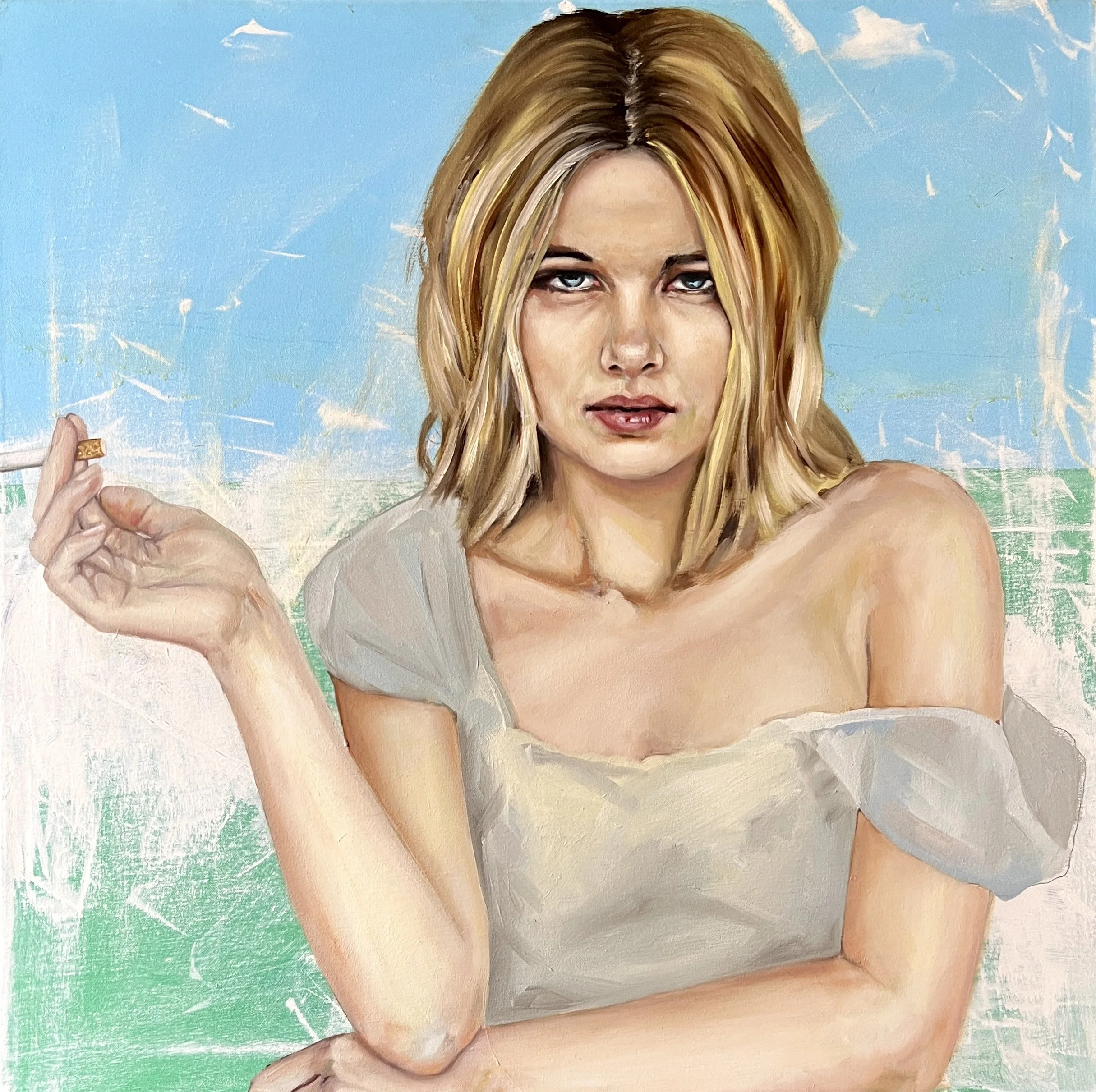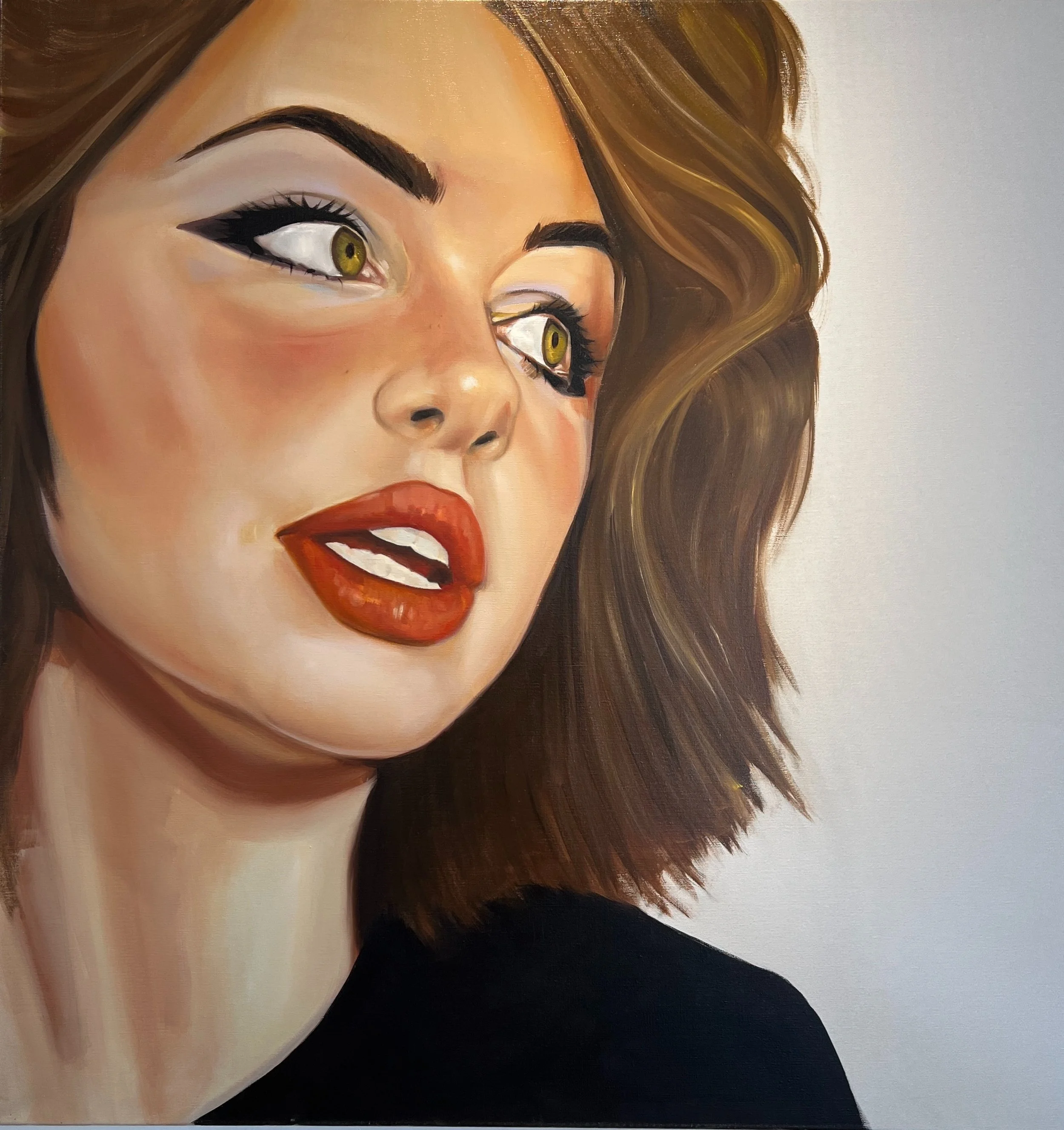 Conde’s paintings bridge the lineage between classic poster art and contemporary realism. Like Patrick Nagel, he employs bold, graphic precision and sensual restraint; like Alphonse Mucha, he celebrates the elegance and emotional gravity of the feminine form. Yet beneath the polish of Conde’s pop-inflected surfaces lies a profound commentary on memory, identity, and the seduction of cultural myth. His women are not muses—they are mirrors, fierce and unashamed, their eyes revealing the subtext of our shared experience.