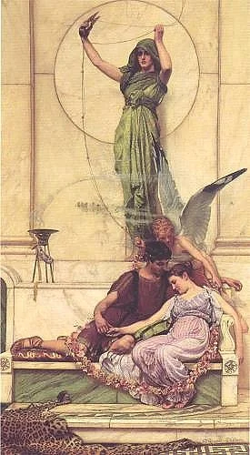 If I might ask us to consider for a moment the Moirae, the goddesses of fate and destiny that are said to control the mother thread of life of every mortal, from birth to death. In my favorite work hanging in the Ringling on the other coast, the painter Sir William Ernest Reynolds-Stephens gives us the eldest of the Fates, Atropos, in the painting "Roman Courtship".
